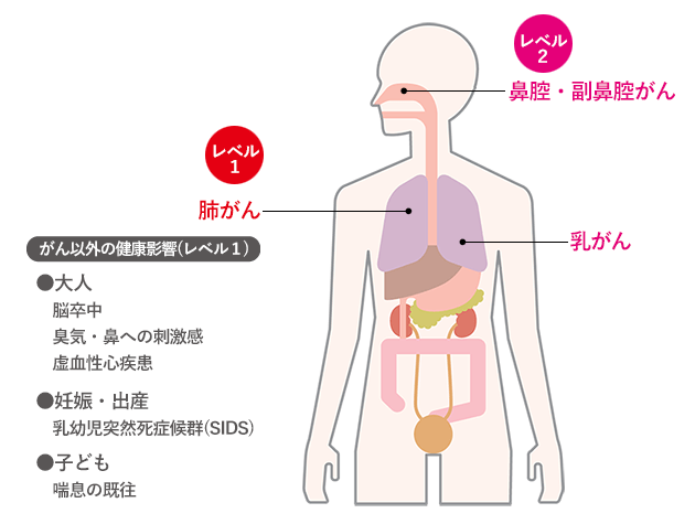 図2.)喫煙している人の周りの人がなりやすいがん(レベル1・レベル2)