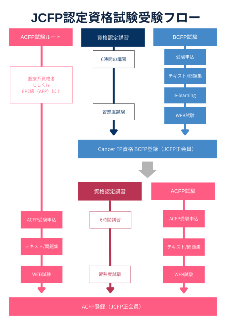 受験資格(ACFP):金融系国家資格※1もしくは医療系国家資格※2の保有者もしくは、BCFP資格合格者(正会員に限る)